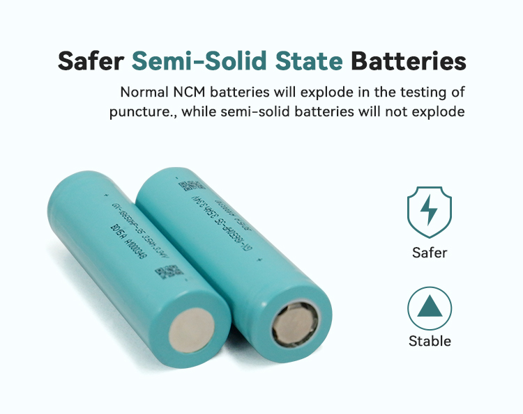 Our 18650 3.5Ah battery, utilizing our proprietary 3500mah semi solid state battery technology, features a composite material composed of graphene and lithium ion, providing unmatched stability and safety.