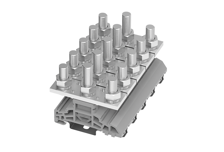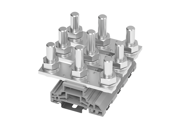 Bolt Connection High-Reliability Terminal Blocks ensure secure and stable electrical wiring for energy storage systems. Featuring threaded pin connections, these blocks accommodate crimped cable lugs for optimal electrical contact and mechanical stability. Designed for high-current applications, they support conductor cross-sections from 2.5-35mm2 up to 6-150mm2, with a rated voltage of 1000V and current ratings reaching up to 309A. Ideal for renewable energy and battery systems, these terminal blocks deliver long-term reliability and performance in demanding environments.More