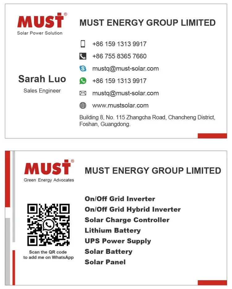 Shenzhen Must Energy Technology Co.,Ltd established in 1998, with the headquarter in Hongkong, which is a professional hi-tech enterprise specialized in Power Inverter, Solar Inverter, Lithium Battery development, manufacturing, sales and after-service.